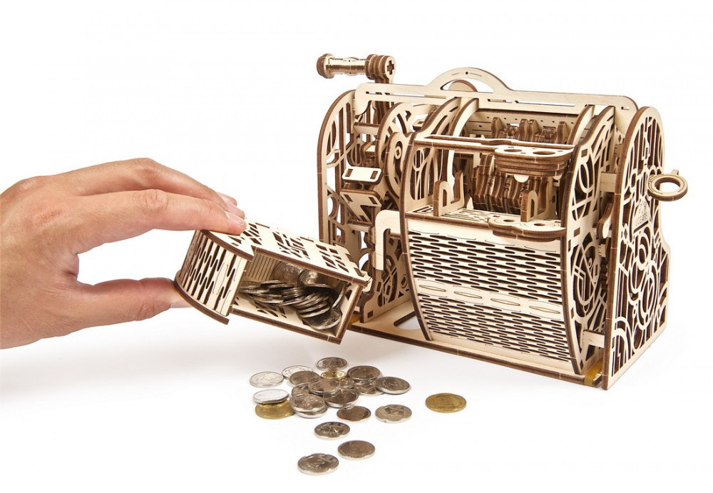 UGEARS Pénztárgép egy páratlan és kreatív modell az irodába vagy a lakásba. A Ugears modellek fejlesztik a logikus gondolkodást, a finommotorikát és a kézügyességet, a szem-kéz koordinációt, és a térlátást. A különleges fa anyagnak köszönhetően az érzékelés-tapintás is fejlődik a játékkal, valamint segít a szabálykövetés elsajátításában.